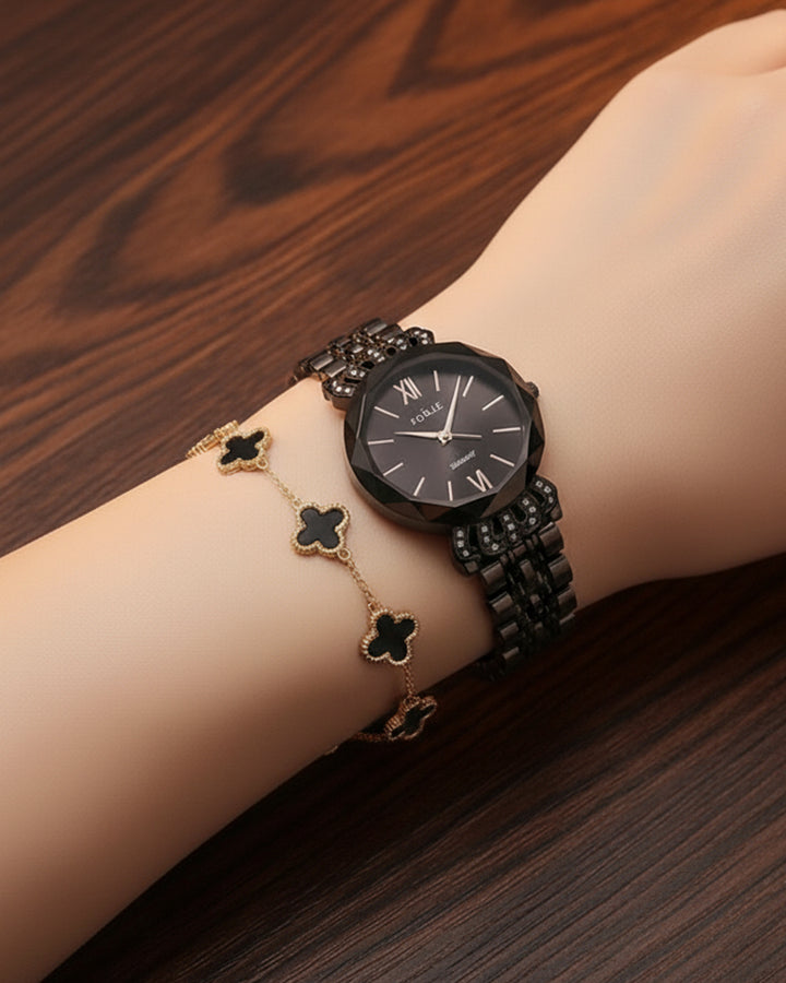 Black Beauty Watch & Clover Bracelet Set