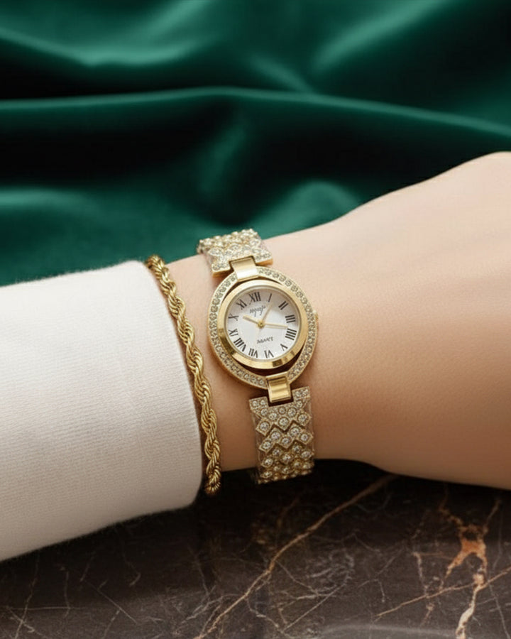 Elegant stainless steel rope bracelet with a full-stone jewelry watch — packed in a beautiful gift box.